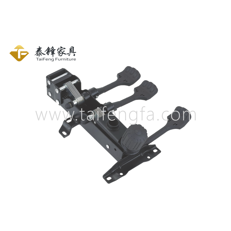 The backrest is supported by a steel plate and the height is adjustable by pulling it.